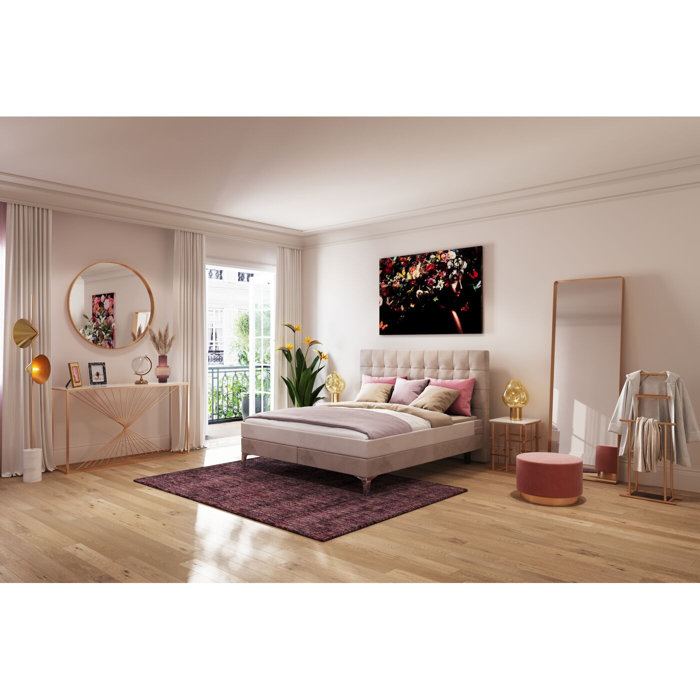 - Premium-quality box spring bed sized 160×200 cm in beige with a modern design