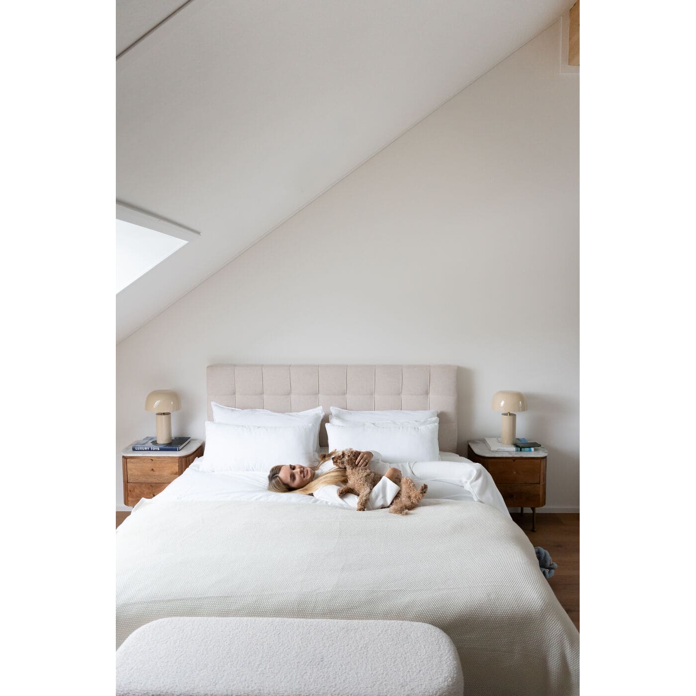 Looking for sweet dreams? Then Benito is the ideal choice for you. The box spring bed in beige with its reclining surface of 160x200 cm has lots of advantages to offer. As an upholstered bed with a chenille cover it gives your bedroom the flair of a luxury hotel. The distinctive headboard with its square decorative seams makes this bed a timeless eye-catcher. And to make sure you enjoy a wonderful night’s rest, the double bed is equipped with every conceivable comfort for a relaxing sleep. A high-quality 5-zone pocket spring mattress rests on the Bonnell spring core box and elastically moulds itself to your body. A topper, which is also included in the scope of supply, ensures an especially cosy and comfortable reclining feeling. At 54 cm this bed has a comfortable seating height. The chenille cover fabric has a practical extra benefit to offer. Equipped with Easy-Clean features it repels stains and water.Shipping Options Explanation