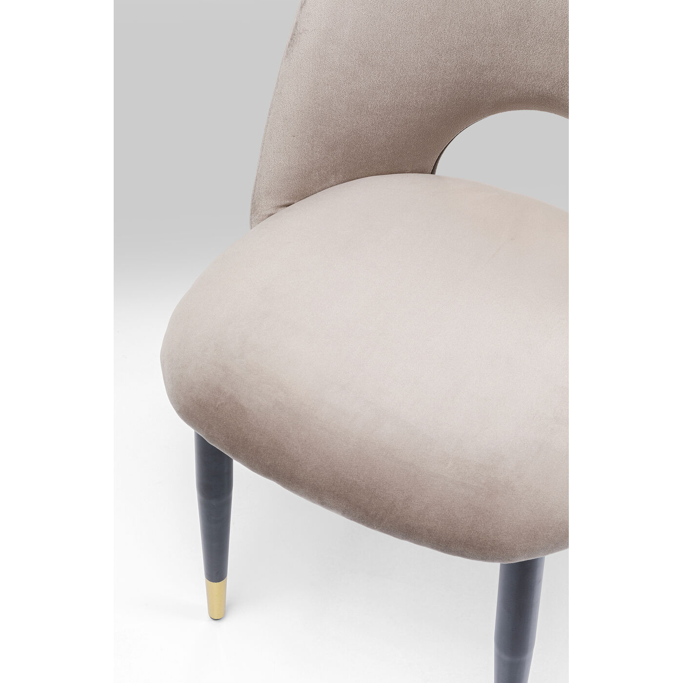 - An eye-catcher with grandeur: an upholstered chair with black lacquered legs and a velvety cover in classical beige,Thanks to its rounded backrest and comfortable upholstery, Iris is a perfect seat for long dinner evenings.