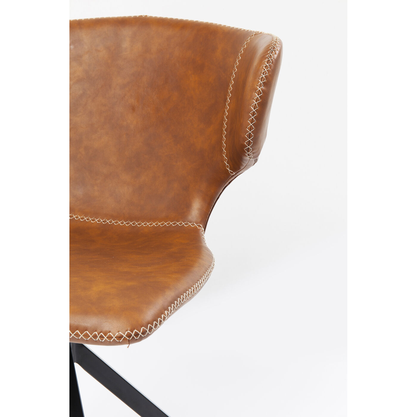 The Rusty chair could also be described as an executive chair, after all it possesses superior elegance. Its comfortable seat shell with the suggested armrests is covered with imitation leather and sits enthroned on a delicate black steel base. A chair made for the boss s desk, but it will also look good at the dining table, a round one made of smoked glass, for example. It looks really impressive.