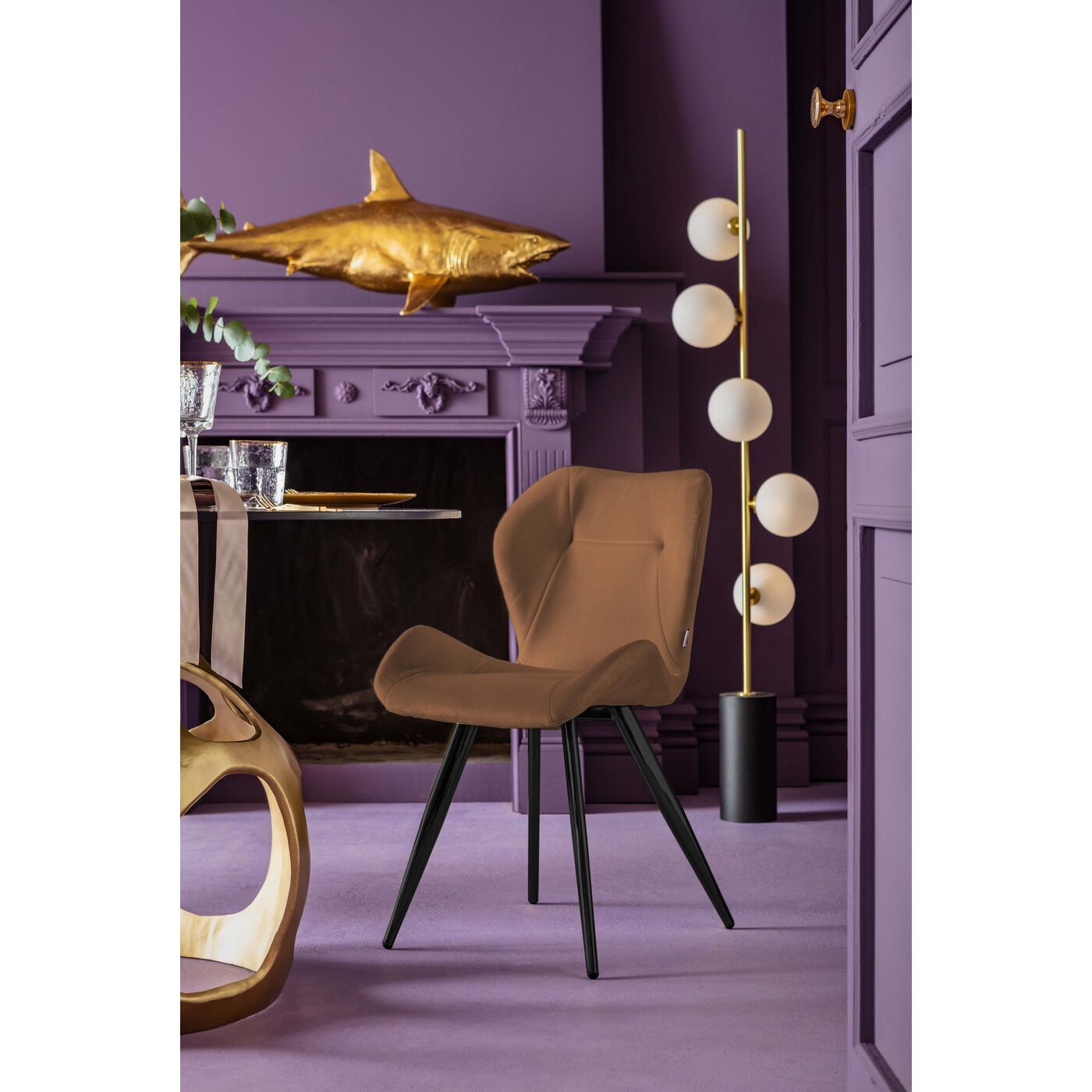 With this chair you are stylistically right up to date. The warm brown of the velvety cover gives the padded chair a special homely touch. The sleek seat is softly padded and stands on sturdy legs of powder-coated steel. With discreet glamour the shell chair adds that certain something to plain, bright rooms. Perfect as a dining chair, it also adds a stylish touch to the desk in the home office or the small dressing table in the bedroom. This cosy chair in a glamorous look is a must-have for all design lovers!Shipping Options Explanation