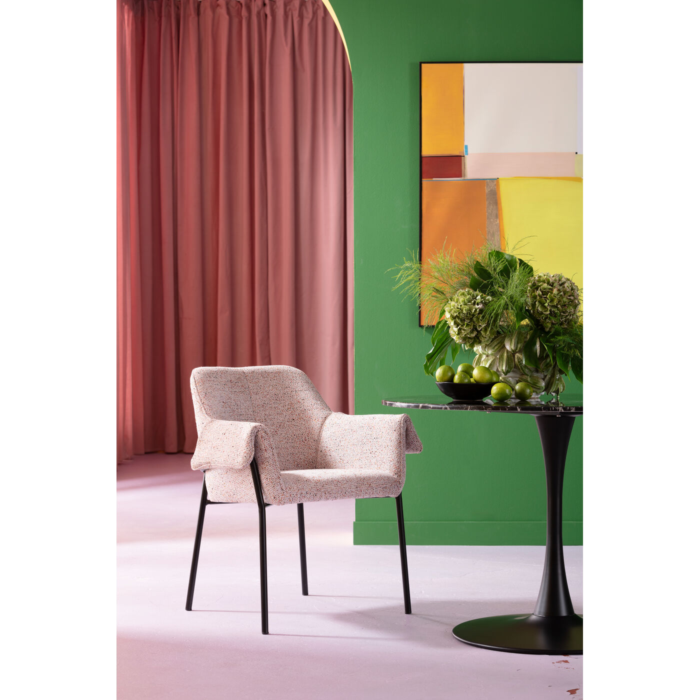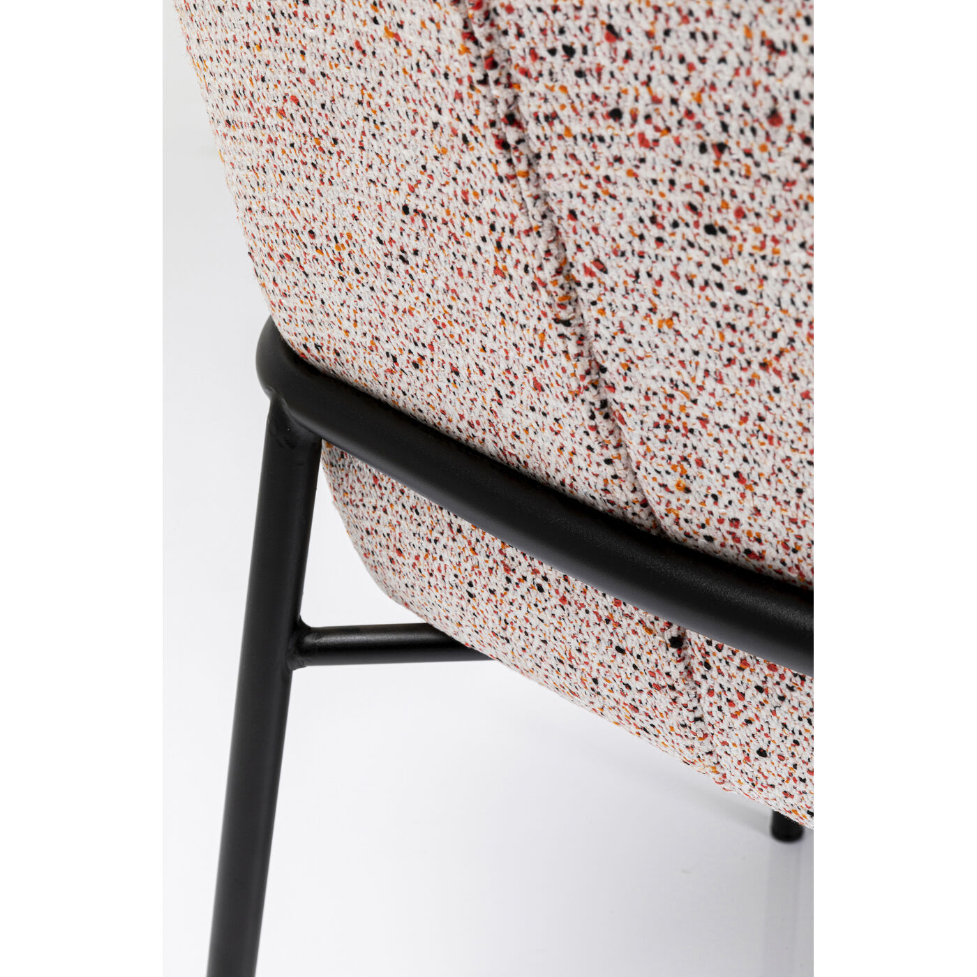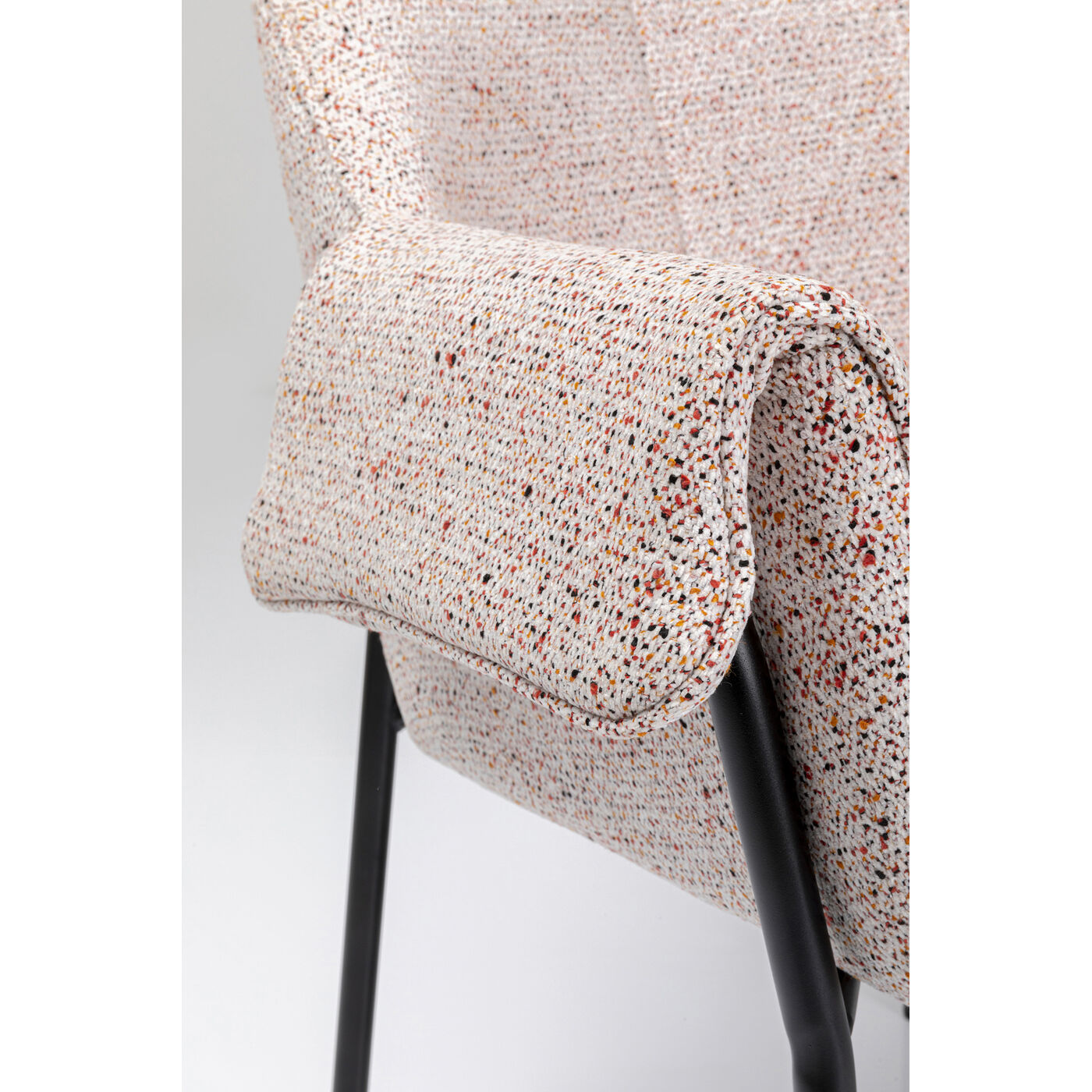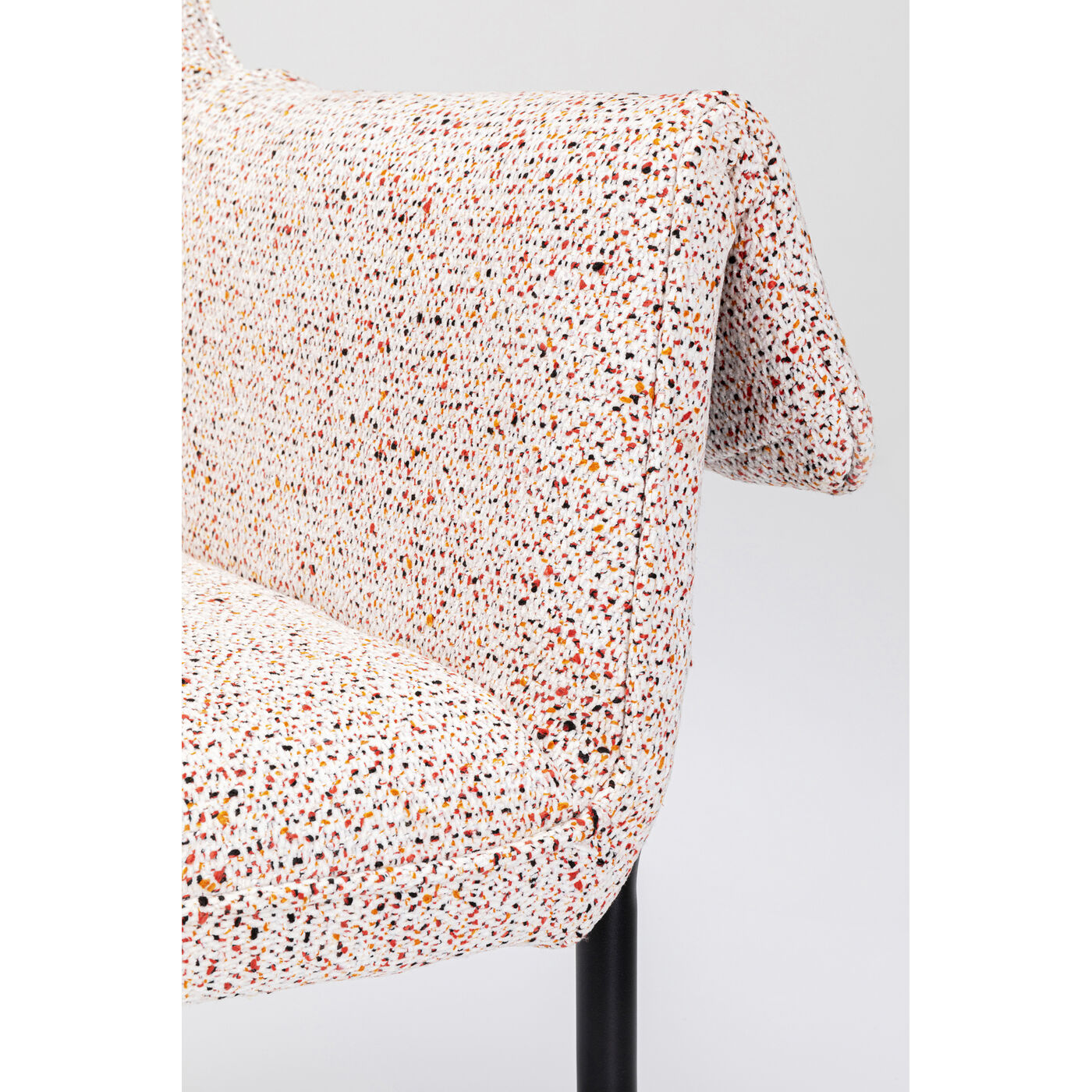 The wonderfully comfortable Bess armchair appears timeless and modern at first glance, but its upholstery fabric with small colourful touches lends it discreet sophistication. The look is reminiscent of the play of colours in tweed fabrics, and adds liveliness to the room. The black legs made of powder-coated steel provide stability.