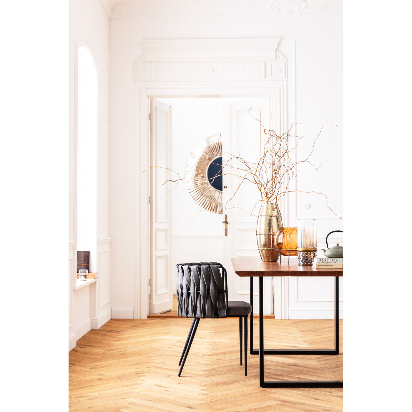 - Comfortable seating is a must in any dining room. With its small cushion, belted round backrest and woven seat, the Cheerio armchair will be the favourite around any table. The painted steel frame ensures stability. The warm yellow guarantees a sunny outlook. Also available in grey and as barstool.