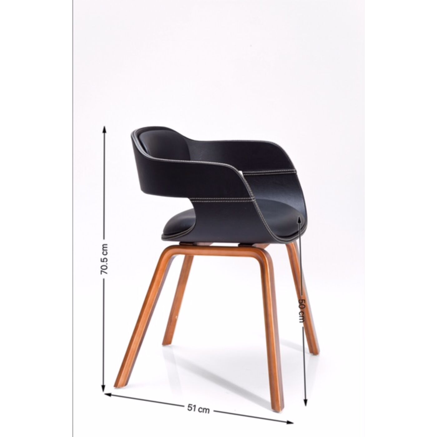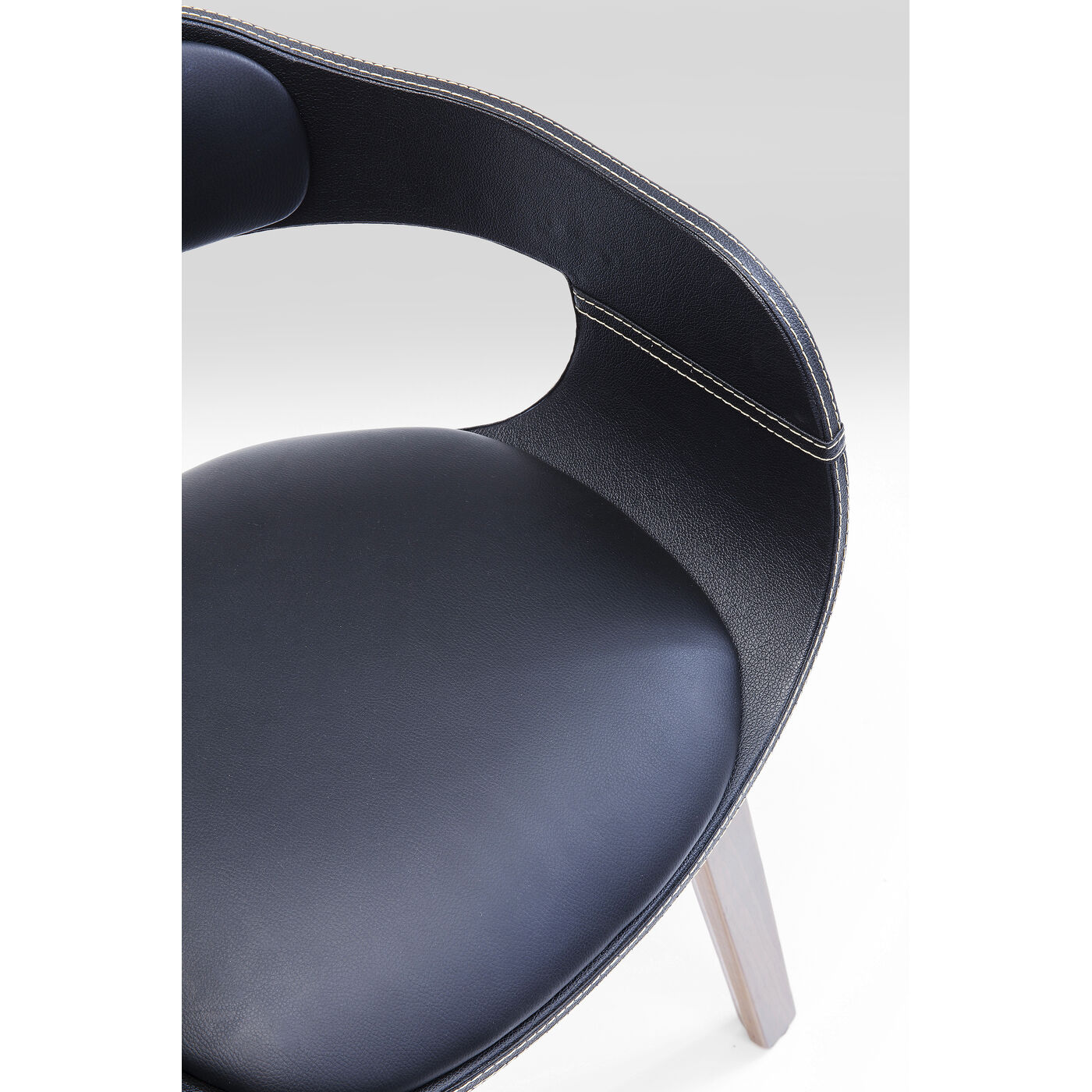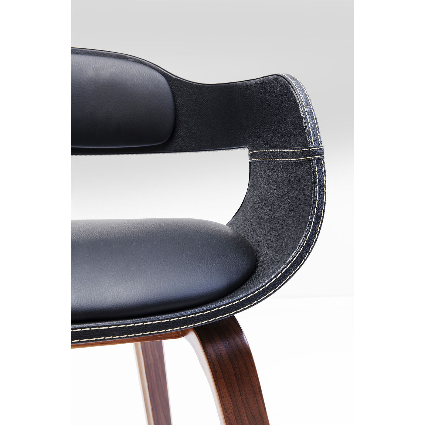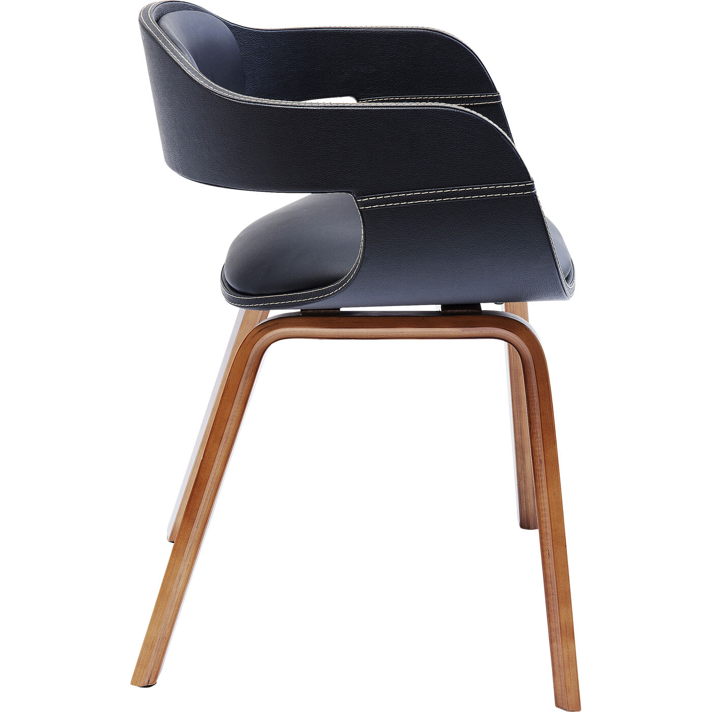 Chair: aristocratic elegance in black and walnut. In the Costa Walnut chair, black and a strong brown form a charming contrast. The comfortable black seat with its black armrests and backrest are supported by four legs made of walnut. Curvy contours characterise the elegant design of this chair, in which the formal idiom has a discreet tone. So much elegance with soothing understatement is well suited to conference rooms with a classically beautiful ambience, but also to living rooms which radiate a cultivated comfort.Shipping Options Explanation