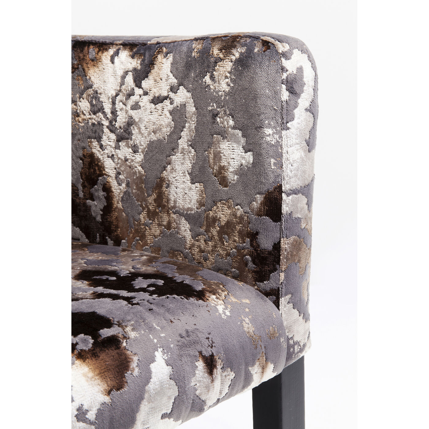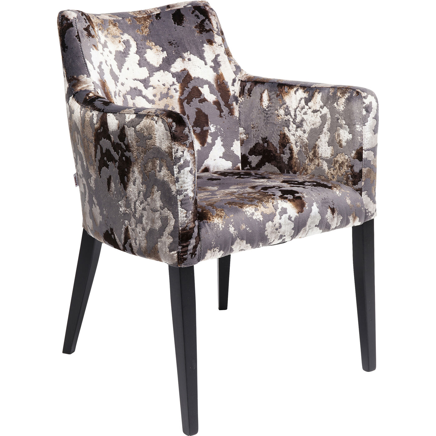 - This straight-lined upholstered chair with high armrests is a modern classic – here with a velvety upholstery fabric – an eye-catcher.