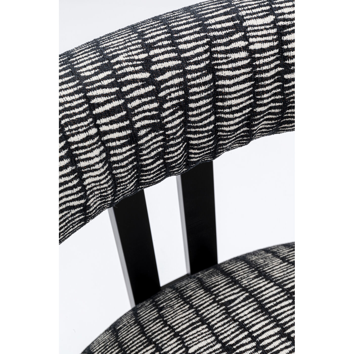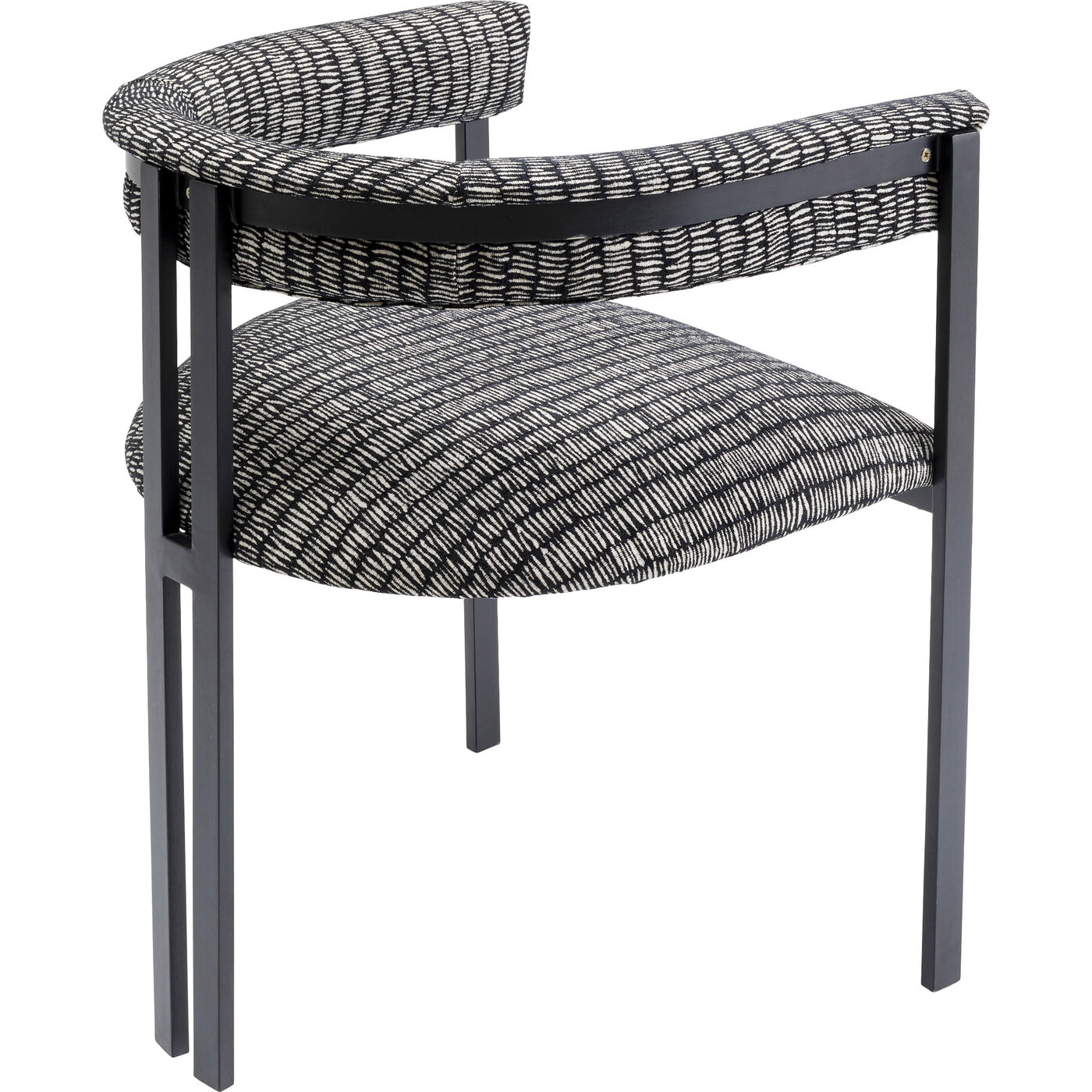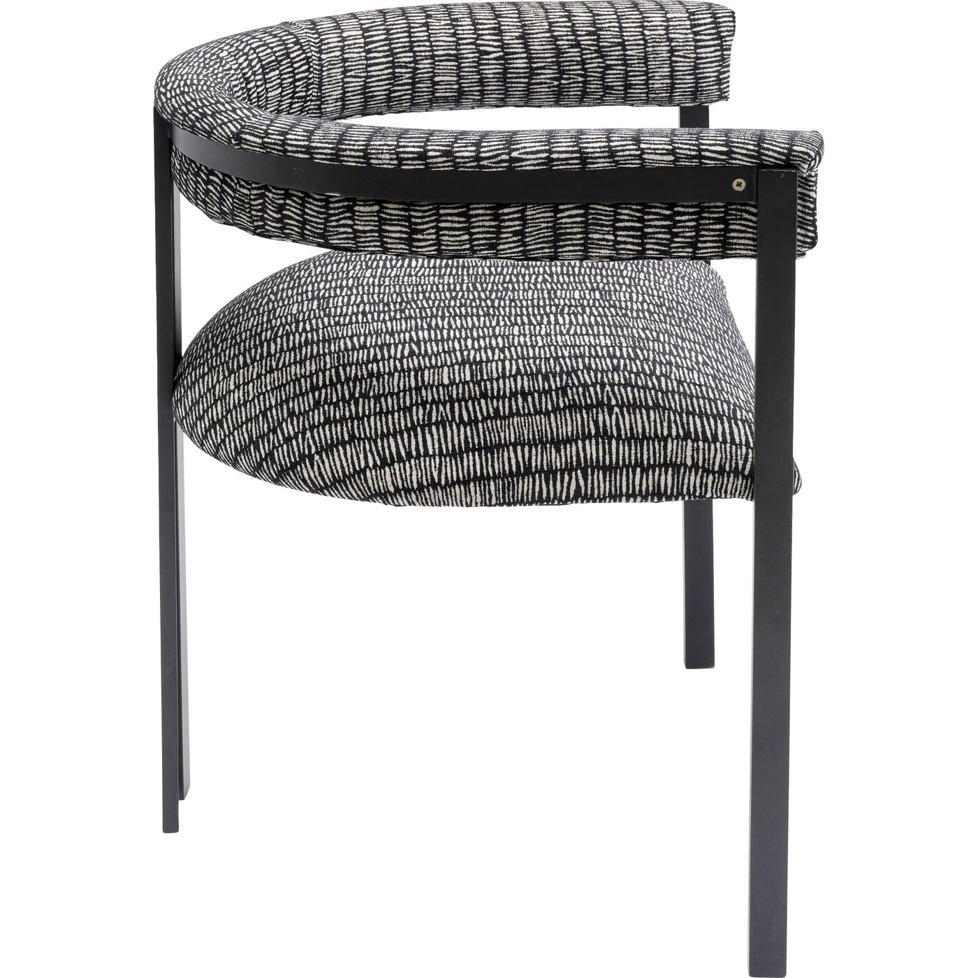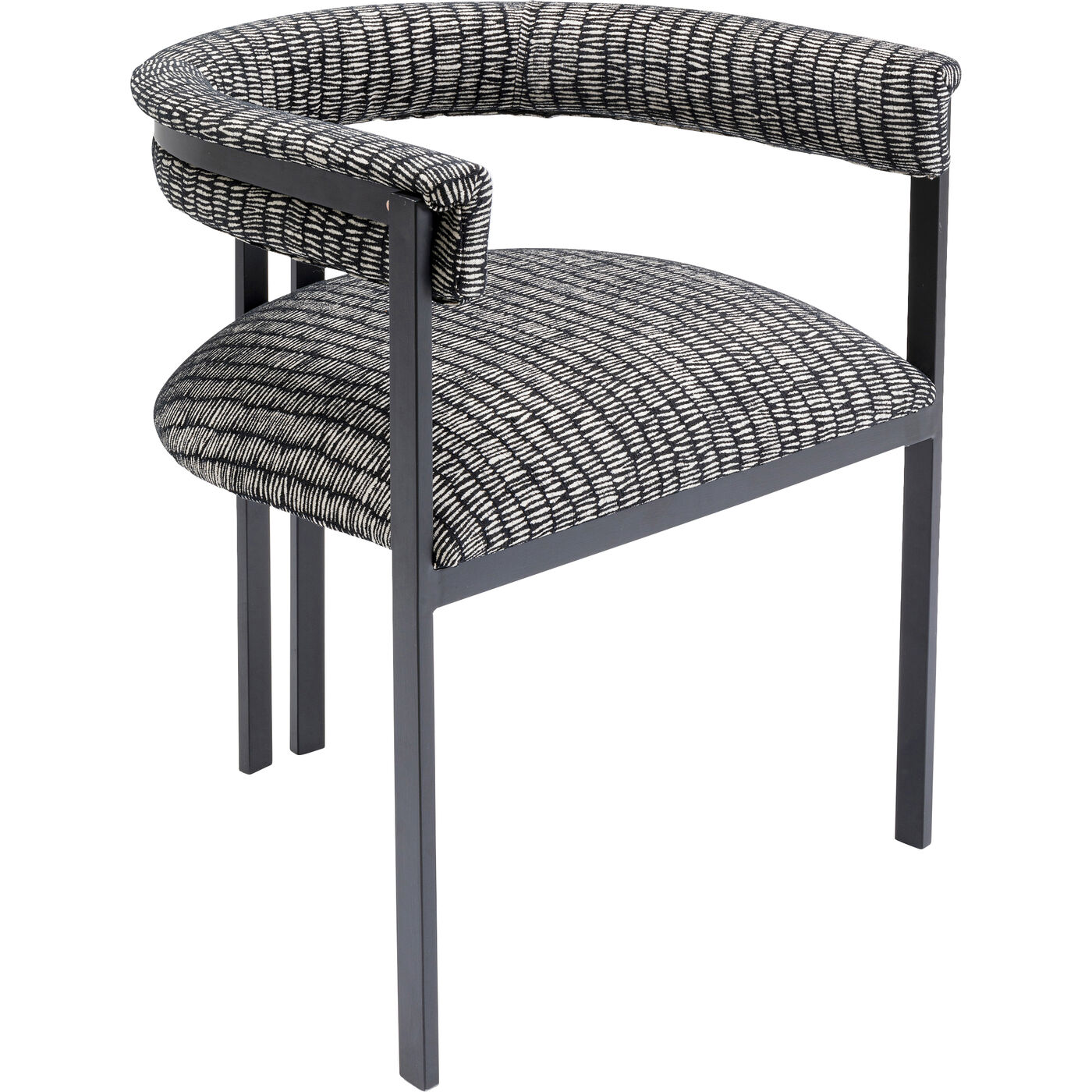 The chair with black and white patterned cover stands for elegant and modern design. The upholstery and the round back of the chair provide seating comfort while you dine. Thanks to the eye-catching styling of its legs this chair is also the perfect highlight in the hallway, at the desk or in front of the dressing table. In the living room it can be used wherever there is not enough space for a voluminous armchair.Shipping Options Explanation