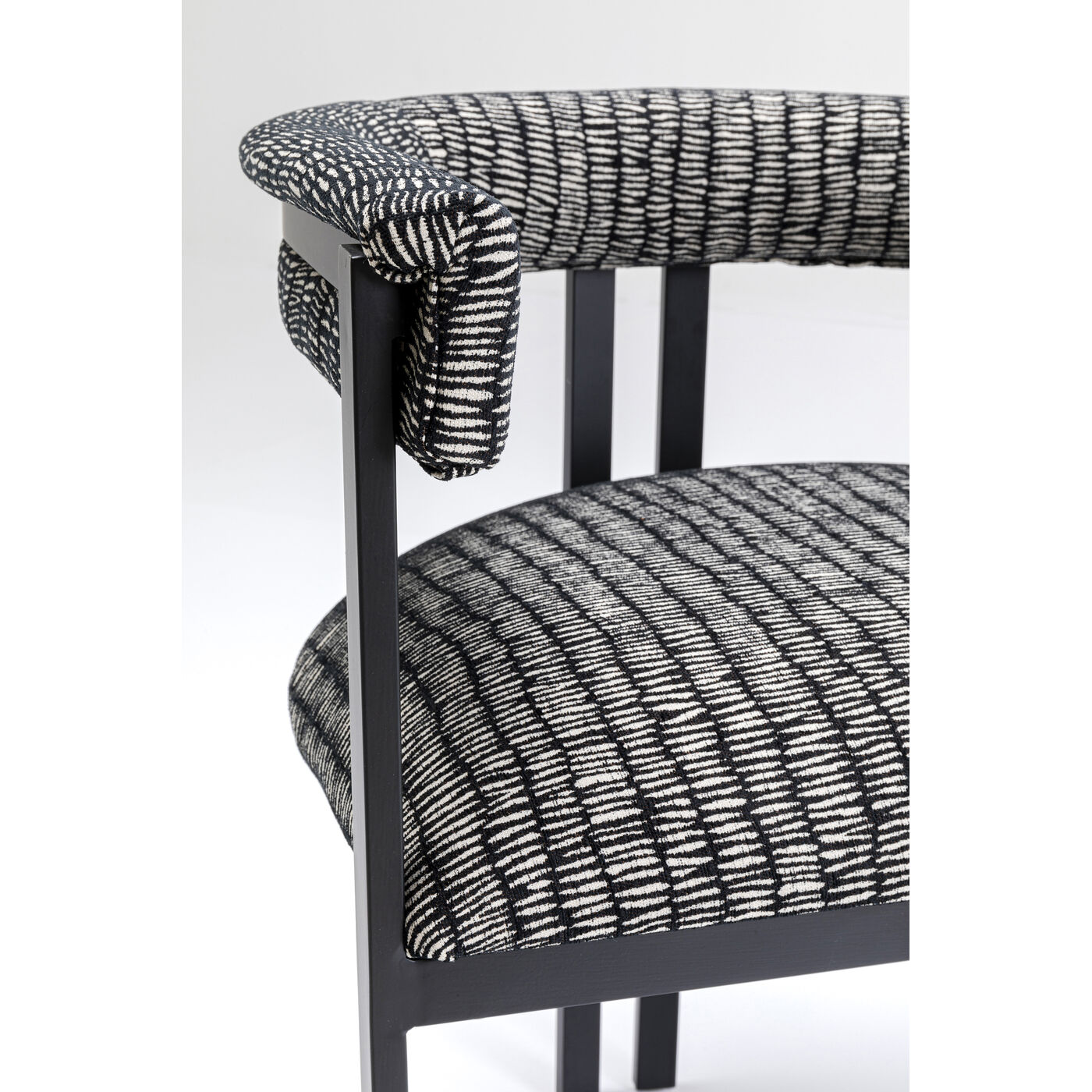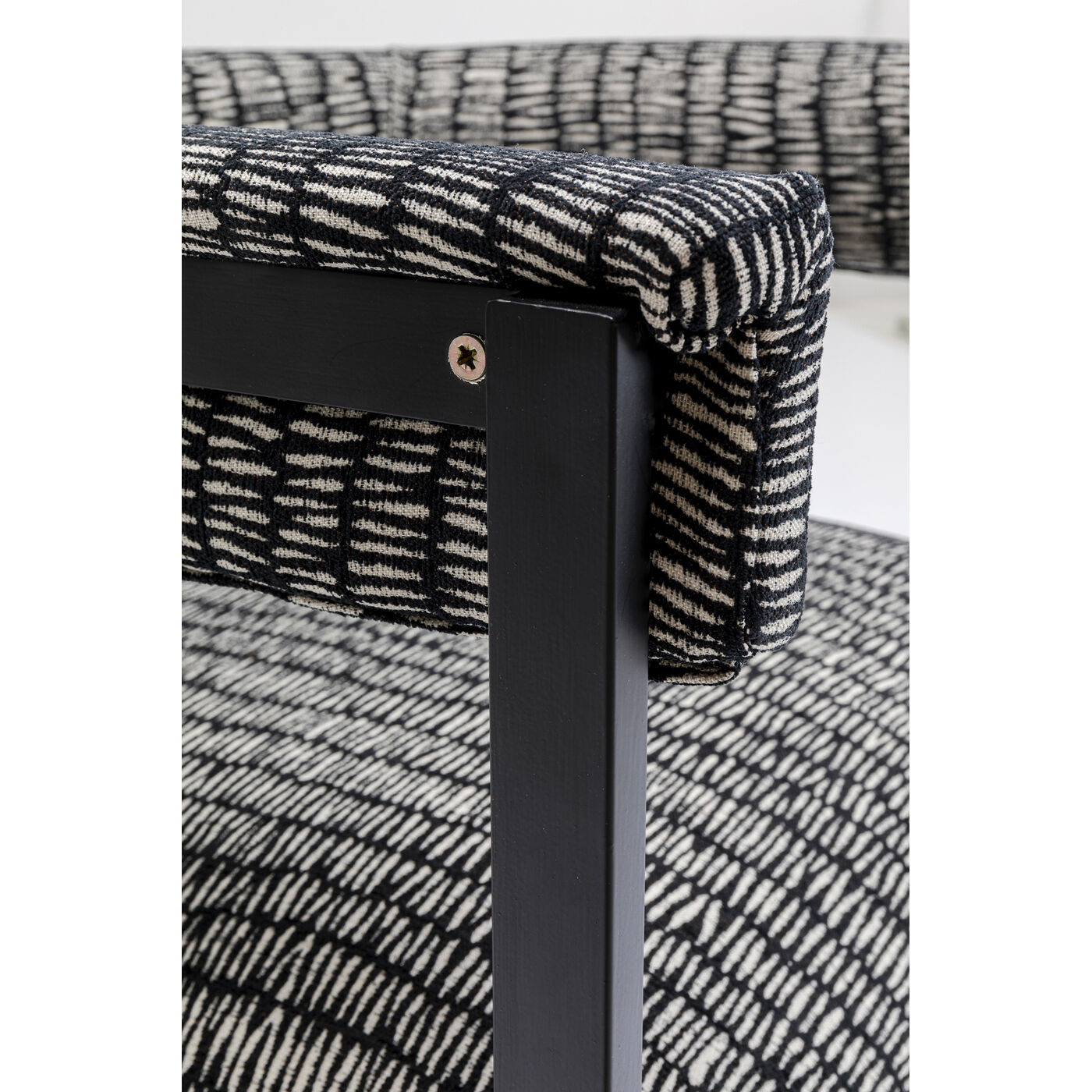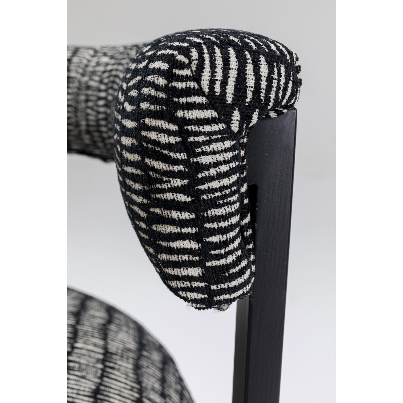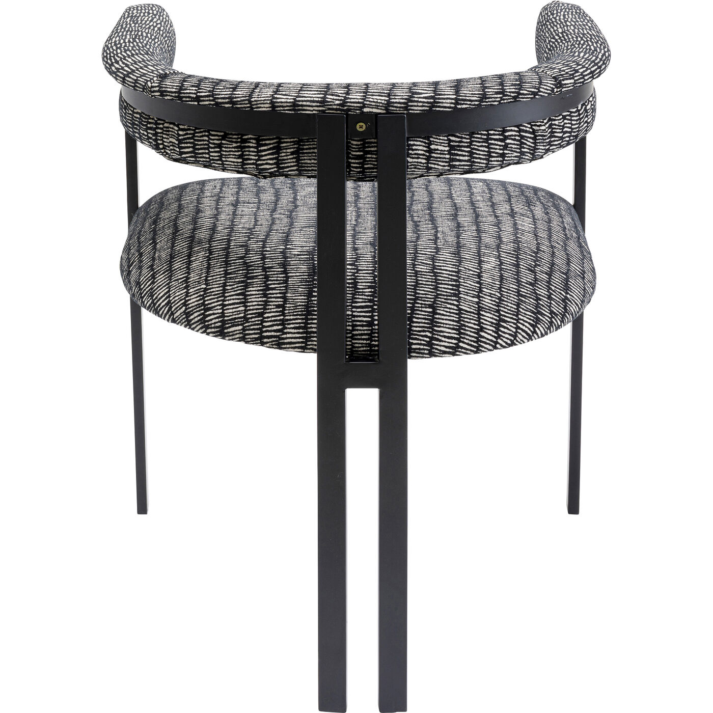 The chair with black and white patterned cover stands for elegant and modern design. The upholstery and the round back of the chair provide seating comfort while you dine. Thanks to the eye-catching styling of its legs this chair is also the perfect highlight in the hallway, at the desk or in front of the dressing table. In the living room it can be used wherever there is not enough space for a voluminous armchair.Shipping Options Explanation