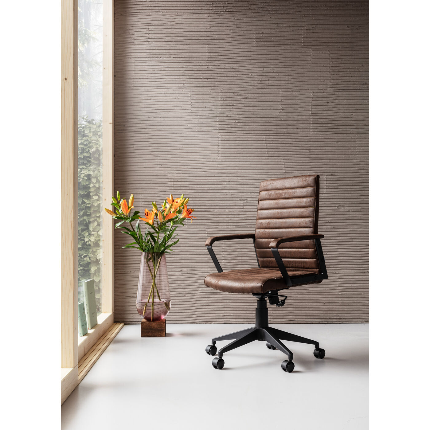 Please turn around! The upholstered office swivel chair Labora Braun impresses with its functions: it rotates, tilts and is height adjustable. In addition Labora offers an ergonomic backrest, a timelessly beautiful design and a hard-wearing cover in the vintage leather look. The resistance of the tilt mechanism of the backrest can be individually adjusted to your physical requirements. The stylish office favourite moves smoothly on five high-quality castors. This office chair makes work much more enjoyable! Labora is available in many variations from the shop.Shipping Options Explanation