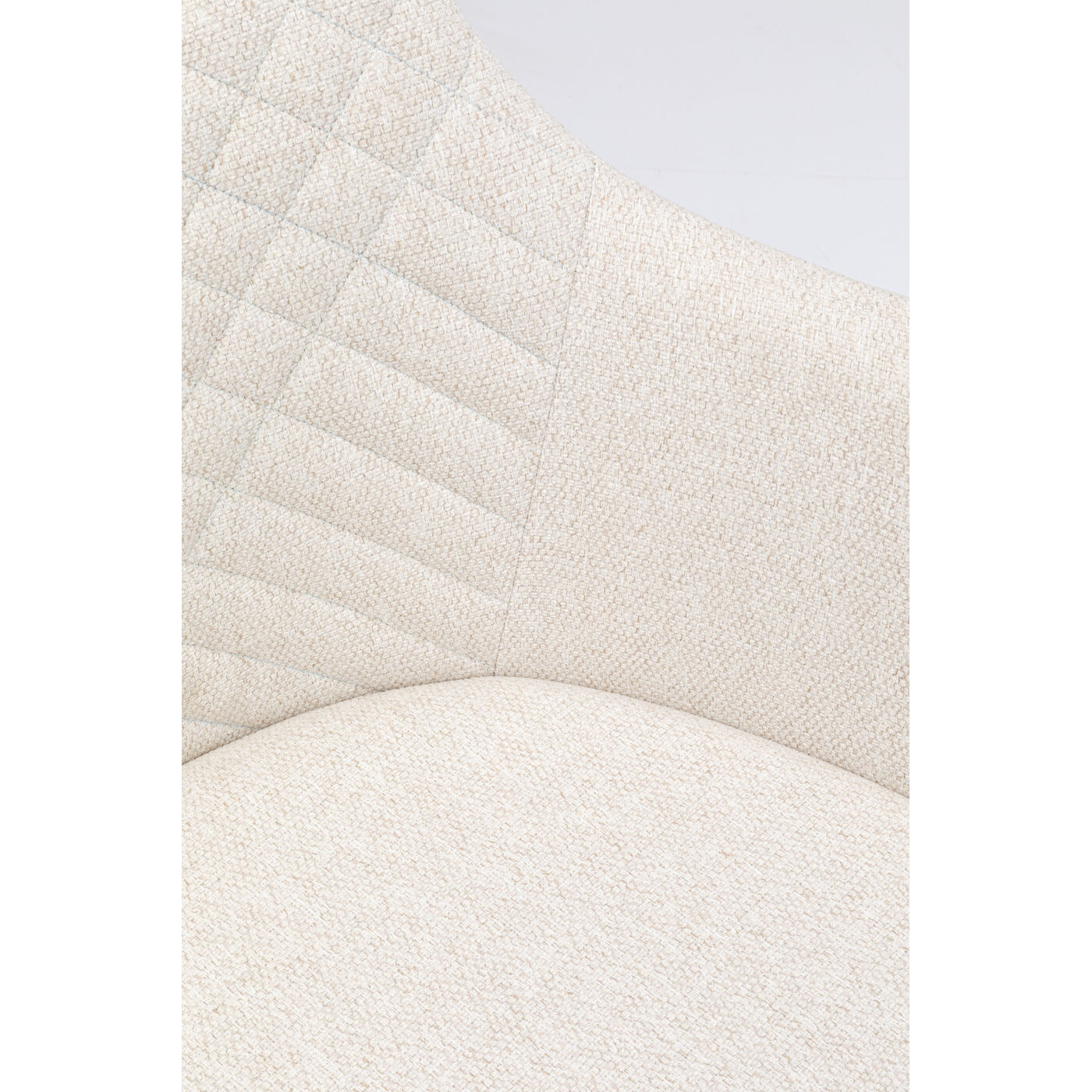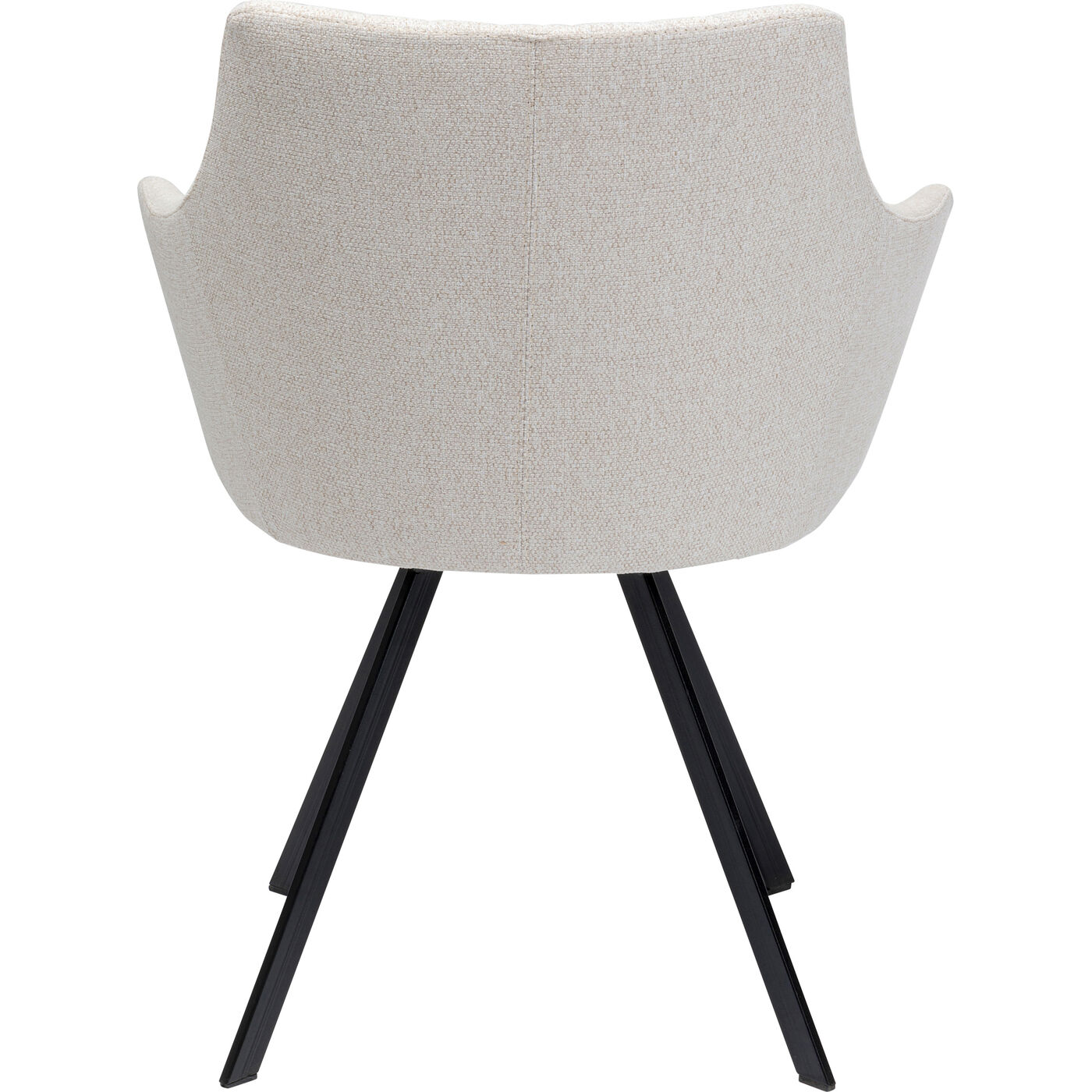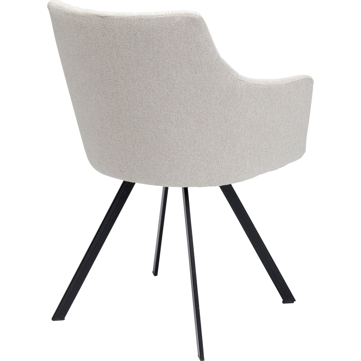 Swivels 360 degrees and also has a reclining function - which makes this upholstered swivel chair with armrests even more convenient. It is comfortable anyway thanks to its generous shell shape, a seat height of 48cm and the pleasant cushioning underneath. Its modern design means it can be used in a variety of ways: at the dining table or desk or as a seat at the make-up table. The light-coloured cover fabric made of chenille weave is not only tested and certified for harmful substances. The textile s Easy-Clean technology repels water and even stains can be removed in no time at all. In other words, you don t need to worry about spills on the light-coloured upholstered furniture.