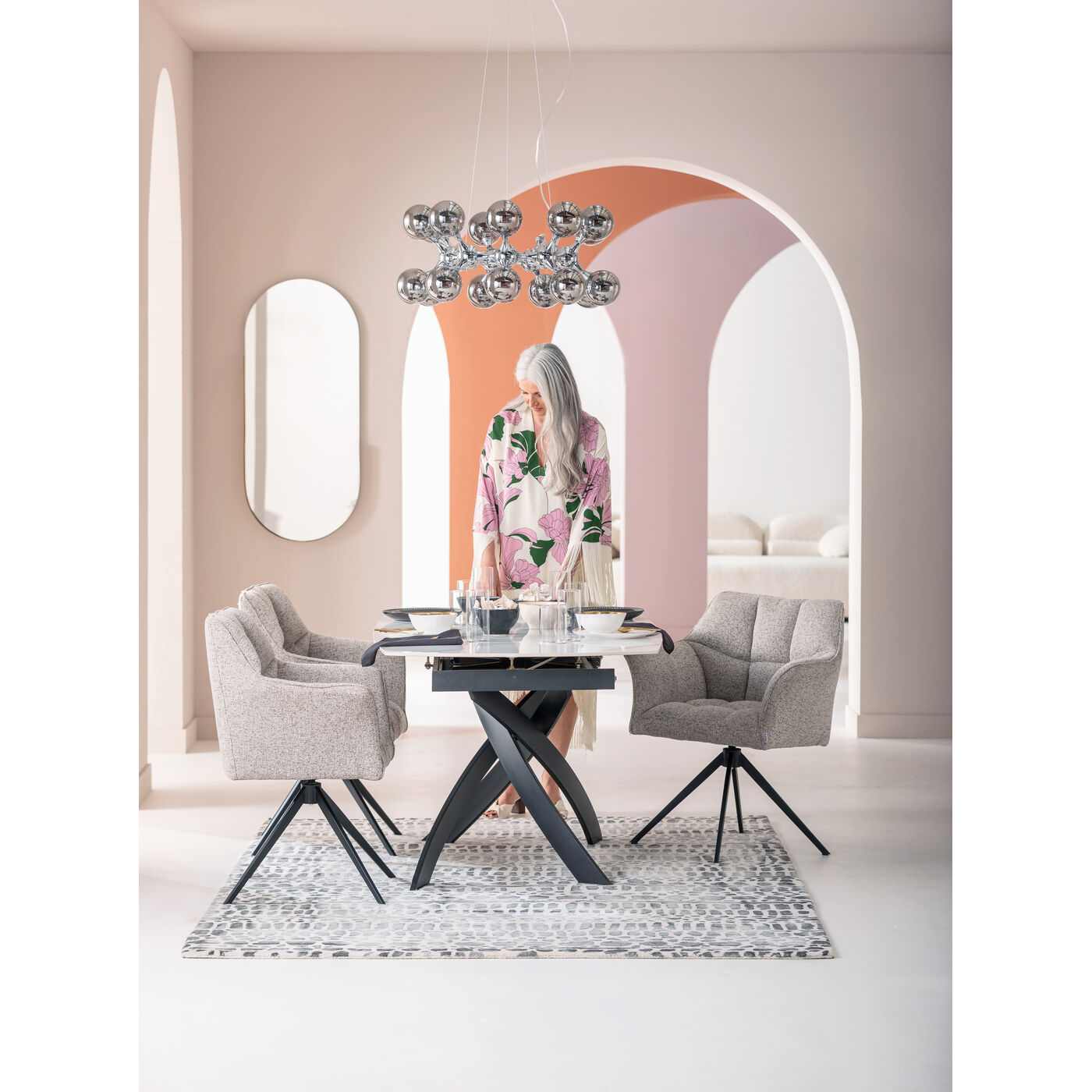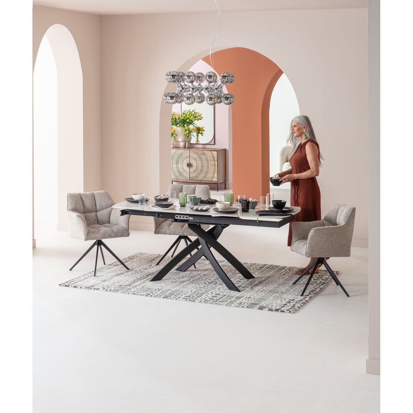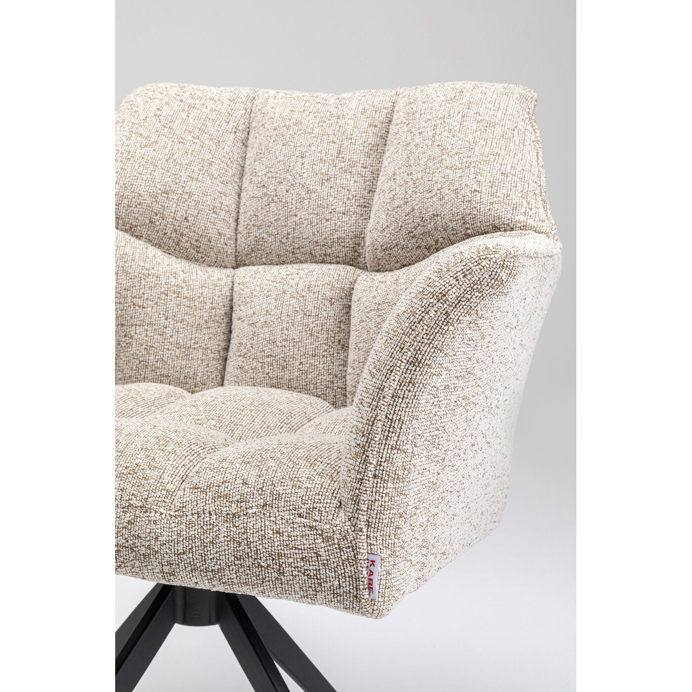 How well KARE designer furniture combines function, seating comfort and design is demonstrated by the Thinktank armchair with its swivel function. A clear square quilted pattern and slightly flared, upholstered armrests give it its modern look. The timeless beige of the dining chair in combination with the black legs harmonises perfectly with any modern furnishing style. As a dining chair or in the office, whoever sits on Thinktank will be sitting in comfort. And as a swivel chair, Thinktank also makes it easy to get up from the dining table. Seat height 48 cmShipping Options Explanation